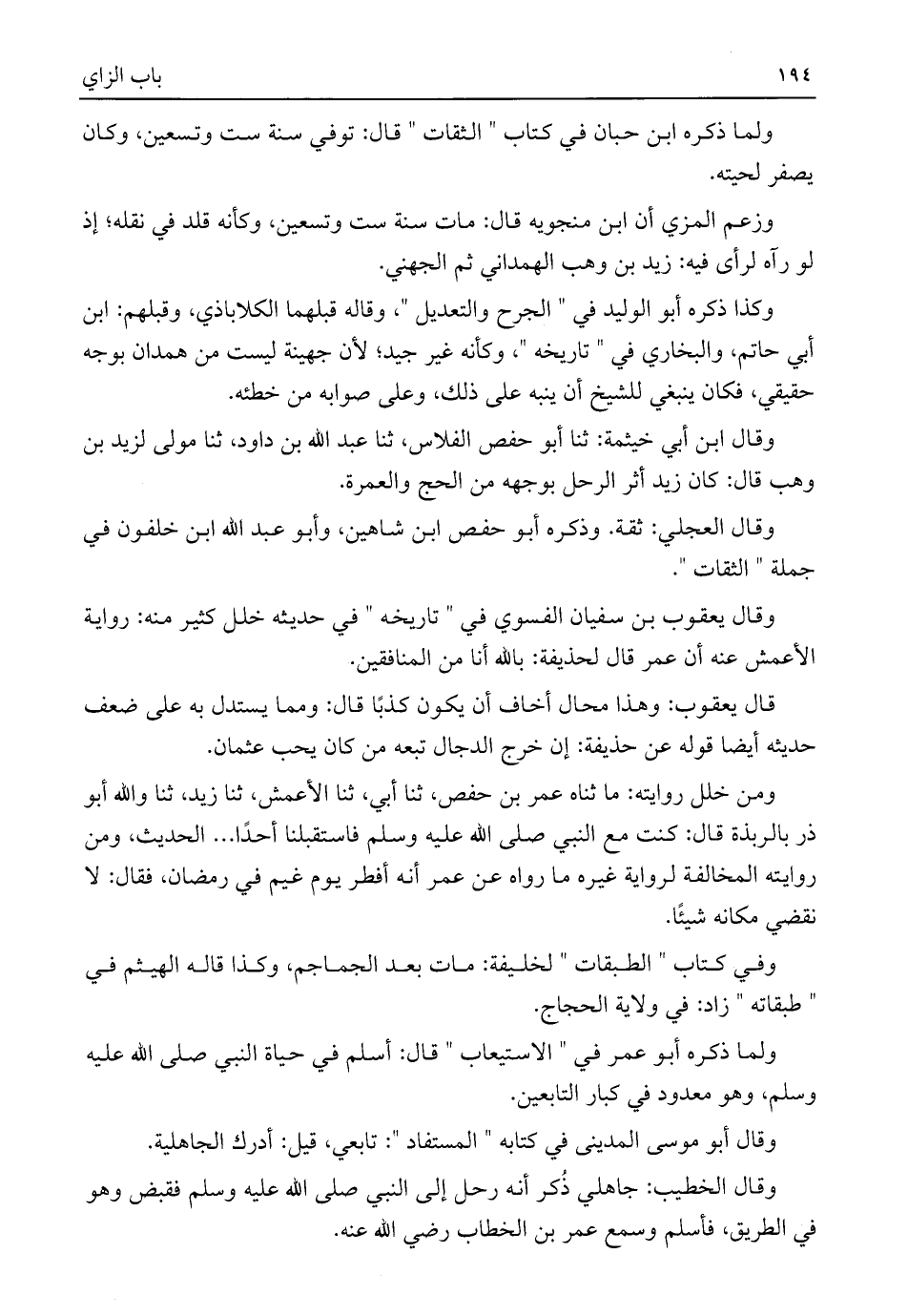 وقال ابن أبي خيثمة: ثنا أبو حفص الفلاس، ثَنَا عبد اللَّه بن داود، ثنا مولى لزيد بن وهب قال: كان زيد أثر الرحل بوجهه من الحج والعمرة.