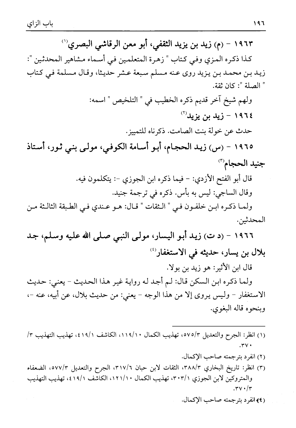 ١٩٦٦ - (د ت) زيد أبو اليسار، مولى النبي صلى اللَّه عليه وسلم، جد بلال بن يسار، حديثه في الاستغفار (¬٤)