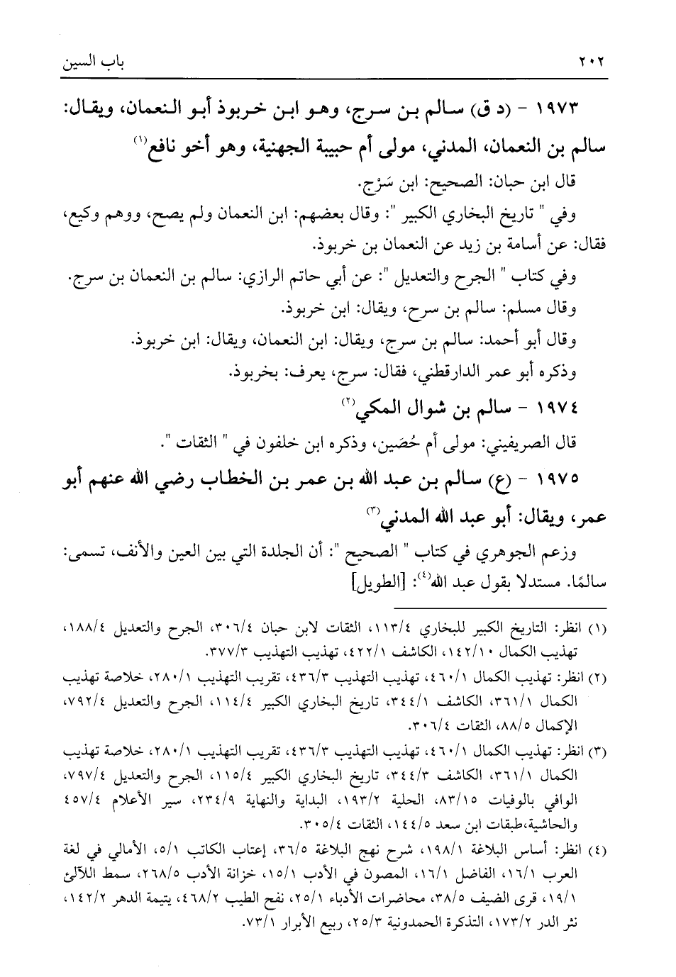 ١٩٧٥ - (ع) سالم بن عبد اللَّه بن عمر بن الخطاب رضي اللَّه عنهم أبو عمر، ويقال: أبو عبد اللَّه المدني (¬٣)