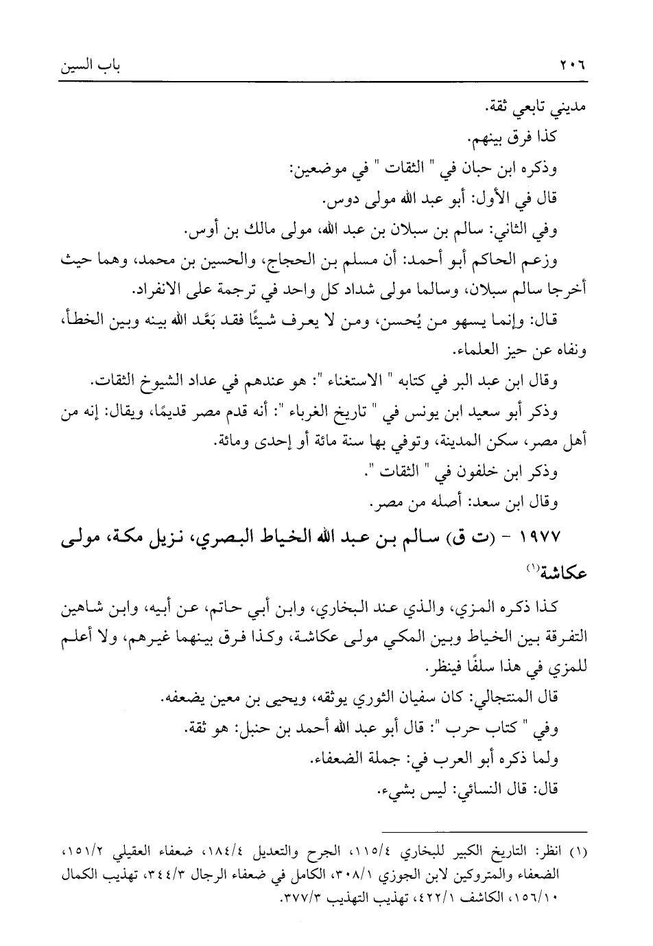 ١٩٧٧ - (ت ق) سالم بن عبد اللَّه الخياط البصري، نزيل مكة، مولى عكاشة (¬١)
