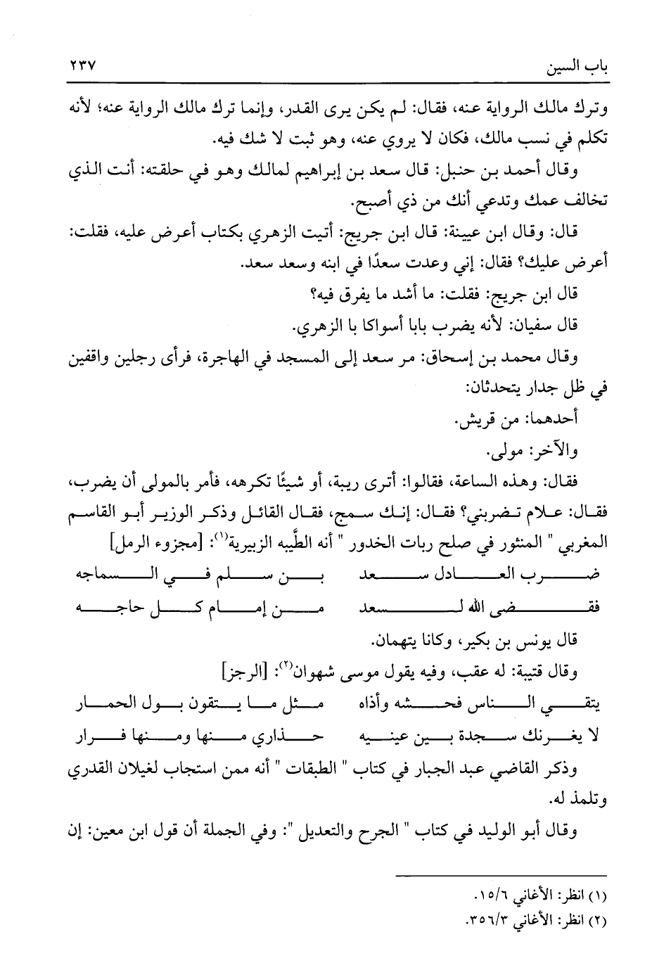 قال: وقال ابن عيينة: قال ابن جريج: أتيت الزهري بكتاب أعرض عليه، فقلت: أعرض عليك؟ فقال: إني وعدت سعدًا في ابنه وسعد سعد.