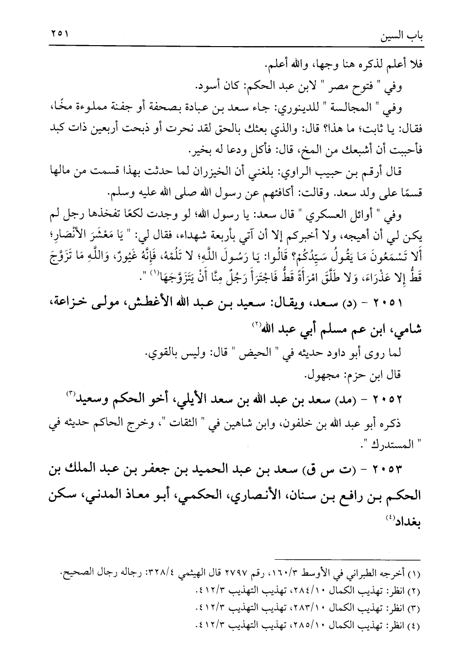 ٢٠٥٣ - (ت س ق) سعد بن عبد الحميد بن جعفر بن عبد الملك بن الحكم بن رافع بن سنان، الأنصاري، الحكمي، أبو معاذ المدني، سكن بغداد (¬٤)
