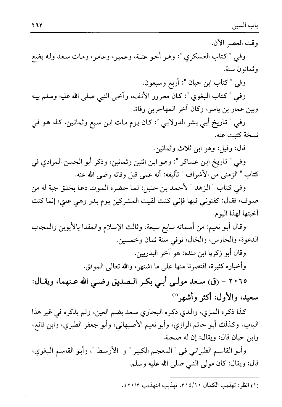 ٢٠٦٥ - (ق) سعد مولى أبي بكر الصديق رضي اللَّه عنهما، ويقال: سعيد، والأول: أكثر وأشهر (¬١)