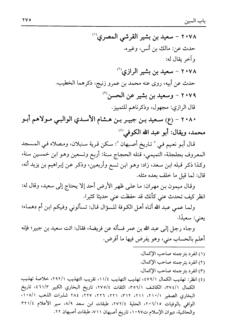 ٢٠٨٠ - (ع) سعيد بن جبير بن هشام الأسدي الوالبي مولاهم أبو محمد، ويقال: أبو عبد اللَّه الكوفي (¬٤)