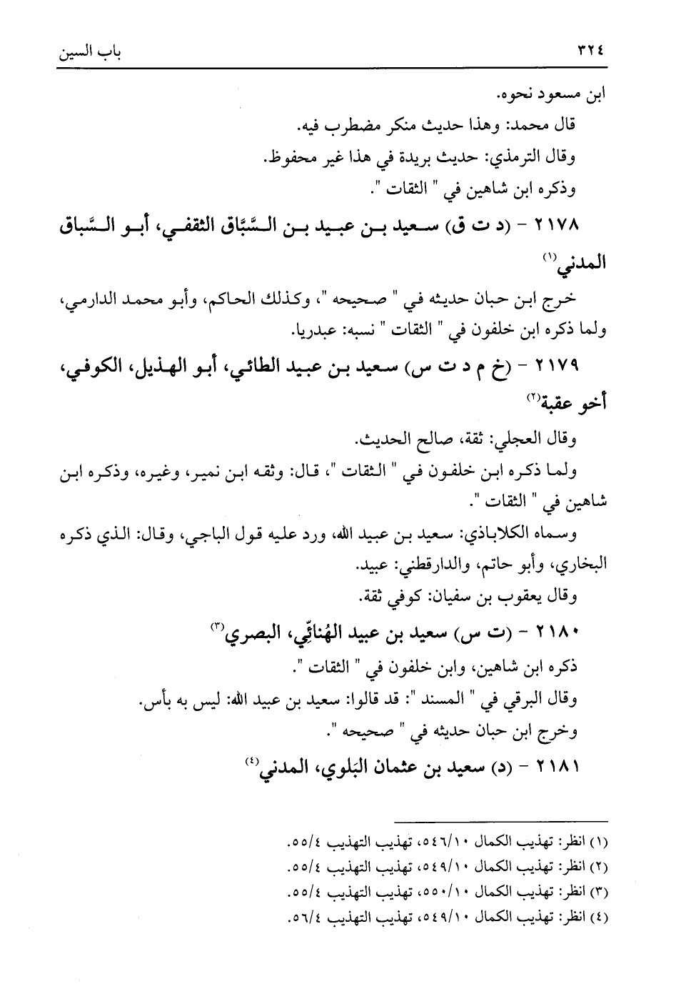 ٢١٧٩ - (خ م د ت س) سعيد بن عبيد الطائي، أبو الهذيل، الكوفي، أخو عقبة (¬٢)