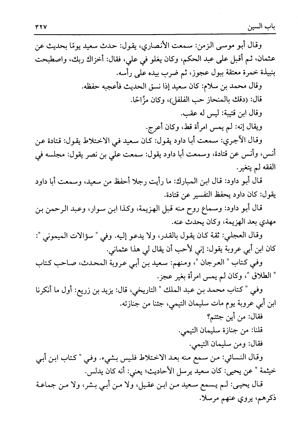 وفي كتاب "العرجان"، ومنهم: سعيد بن أبي عروبة المحدث، صاحب كتاب "الطلاق"، وكان لم يمس امرأة بغير عجز.