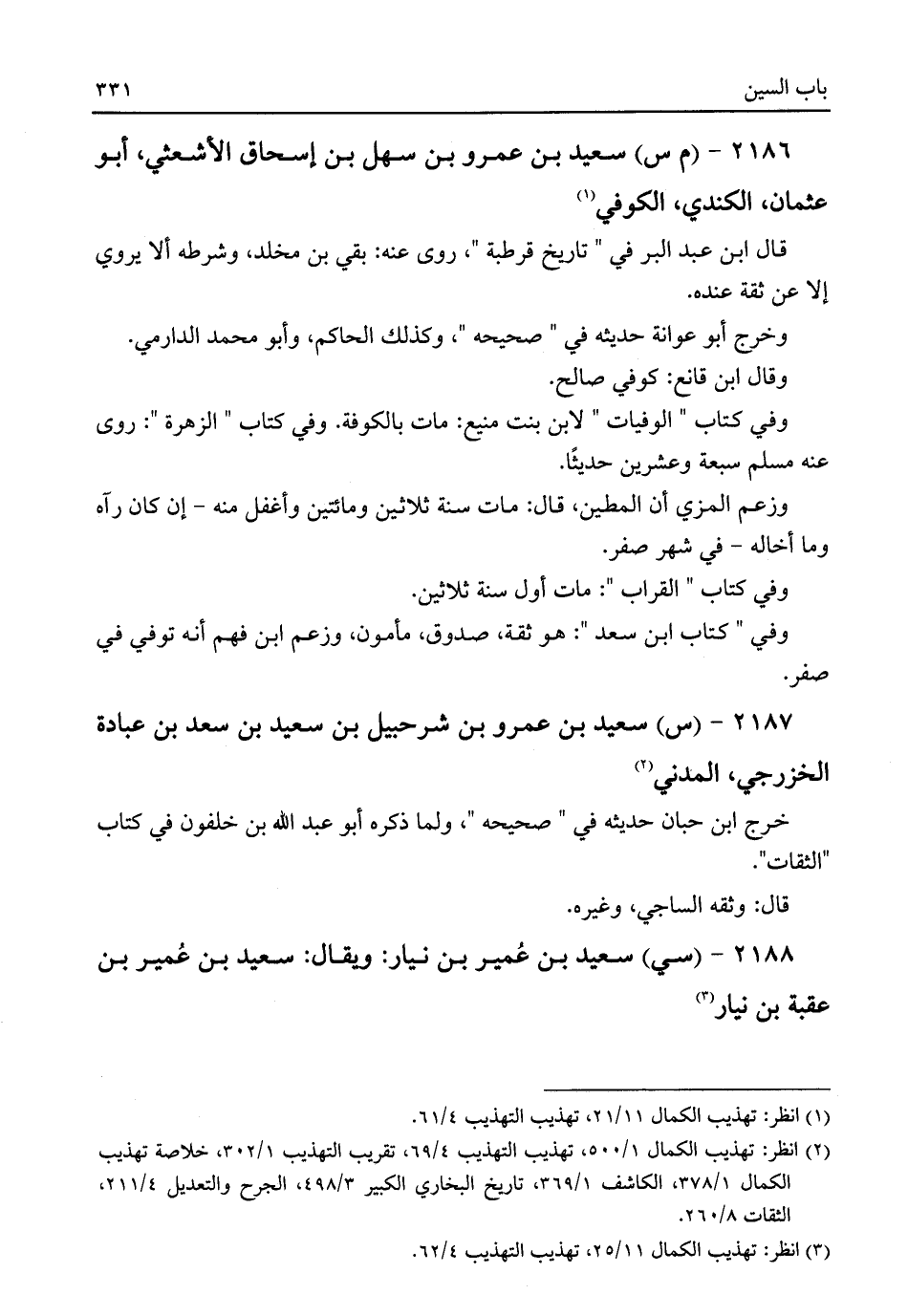 (¬٣) انظر: تهذيب الكمال ١١/ ٢٥، تهذيب التهذيب ٤/ ٦٢.