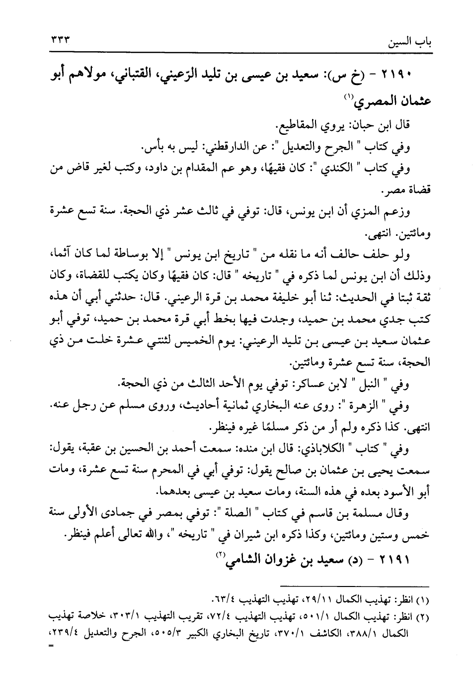 ٢١٩٠ - (خ س): سعيد بن عيسى بن تليد الرّعيني، القتباني، مولاهم أبو عثمان المصري (¬١)