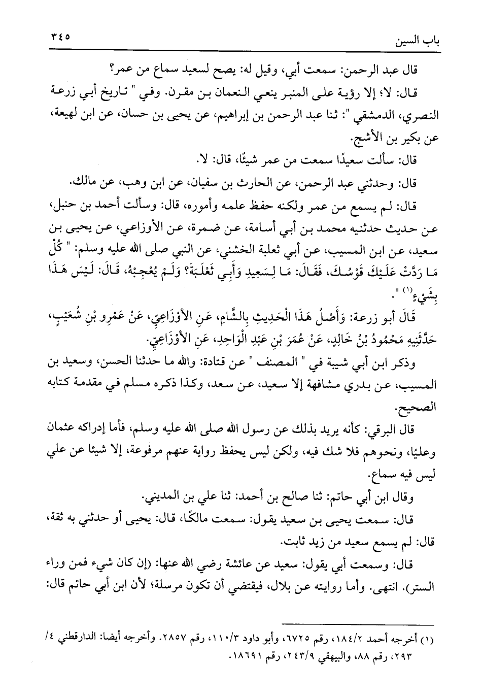 قال عبد الرحمن: سمعت أبي، وقيل له: يصح لسعيد سماع من عمر؟