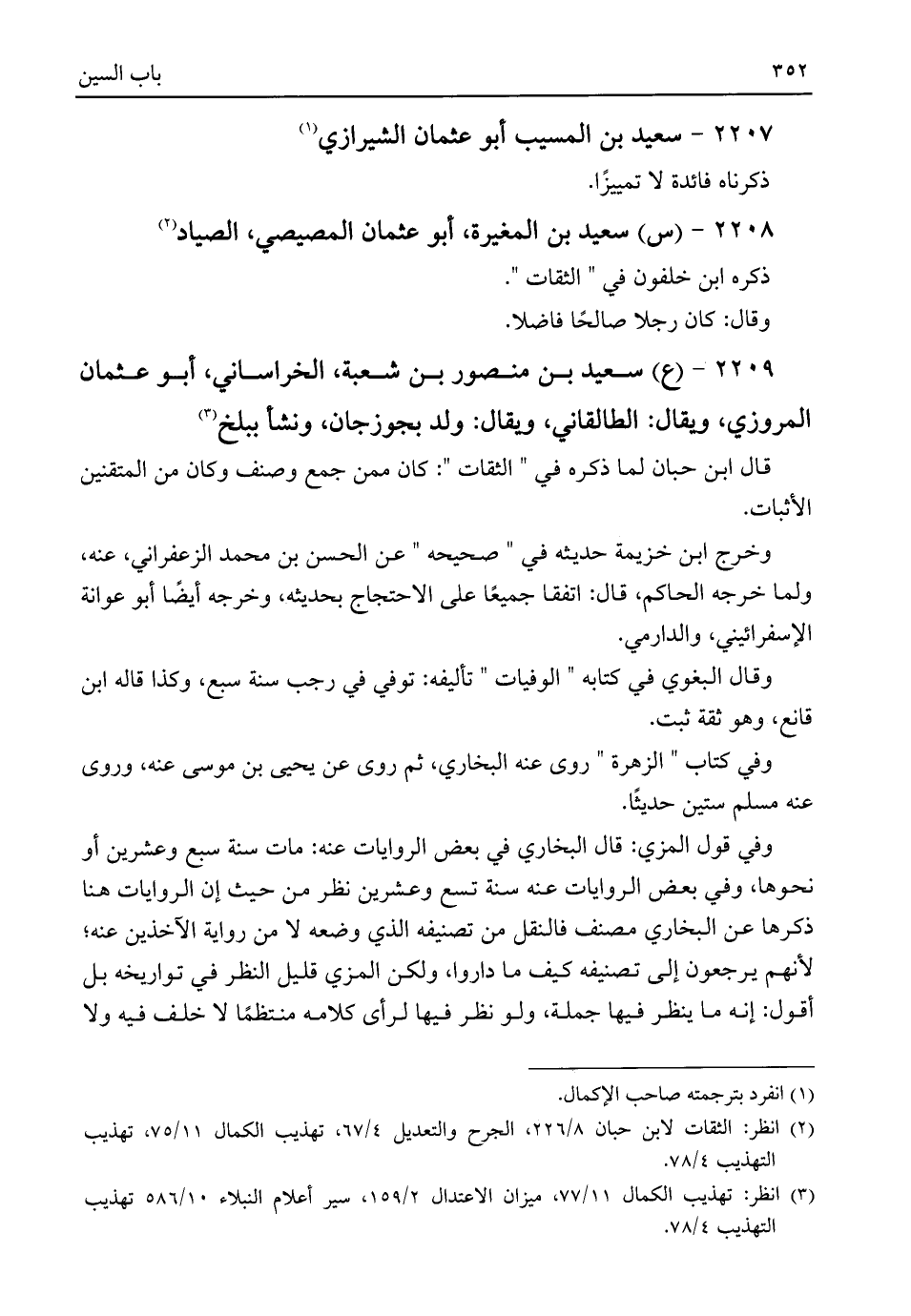 ٢٢٠٩ - (ع) سعيد بن منصور بن شعبة، الخراساني، أبو عثمان المروزي، ويقال: الطالقاني، ويقال: ولد بجوزجان، ونشأ ببلخ (¬٣)