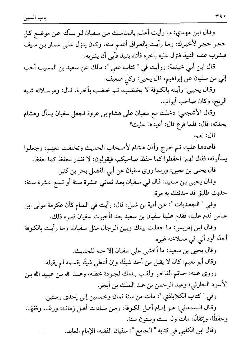 وقال ابن الكلبي في كتابه "الجامع": سفيان الفقيه، الإمام العابد.