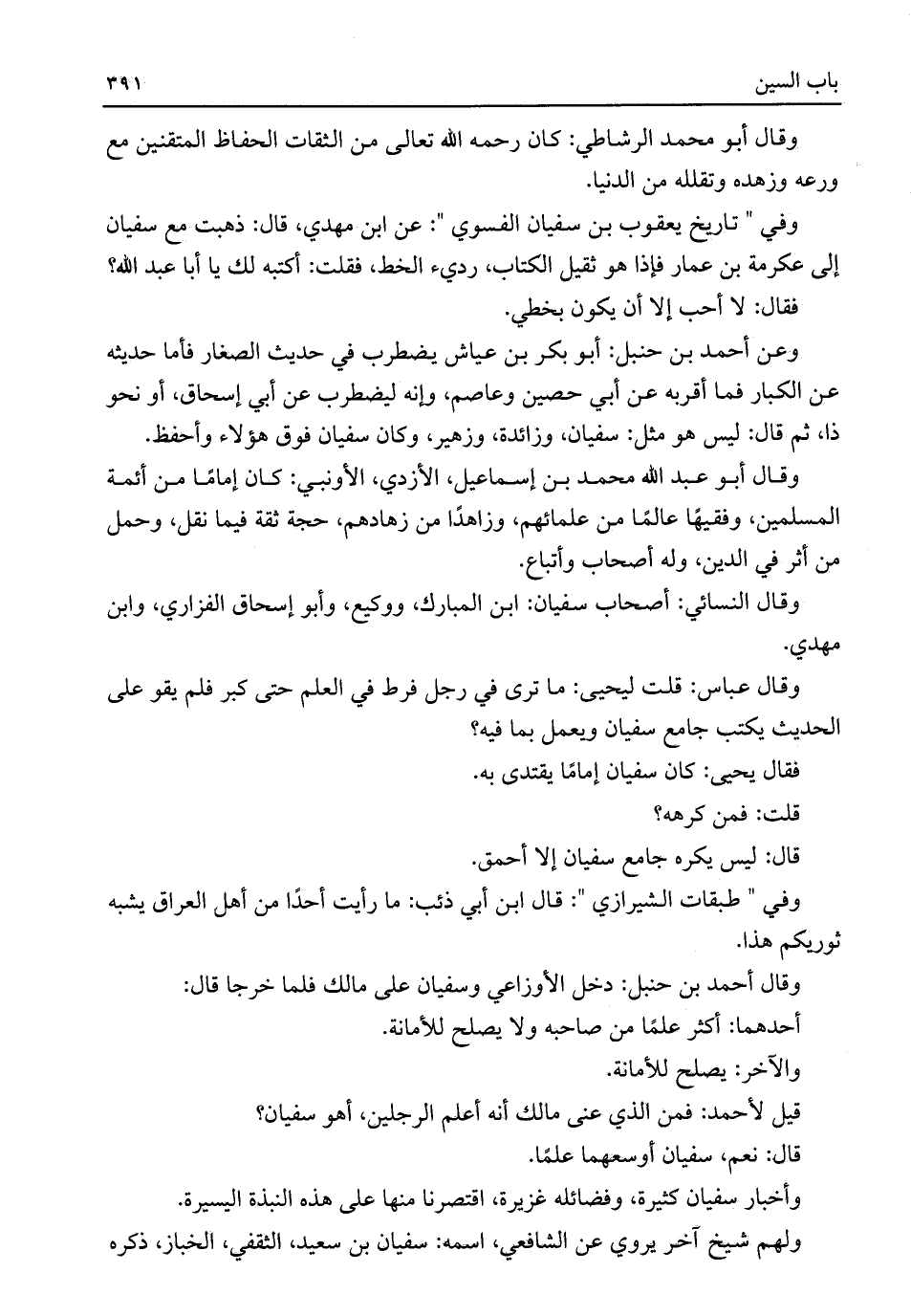 وأخبار سفيان كثيرة، وفضائله غزيرة، اقتصرنا منها على هذه النبذة اليسيرة.