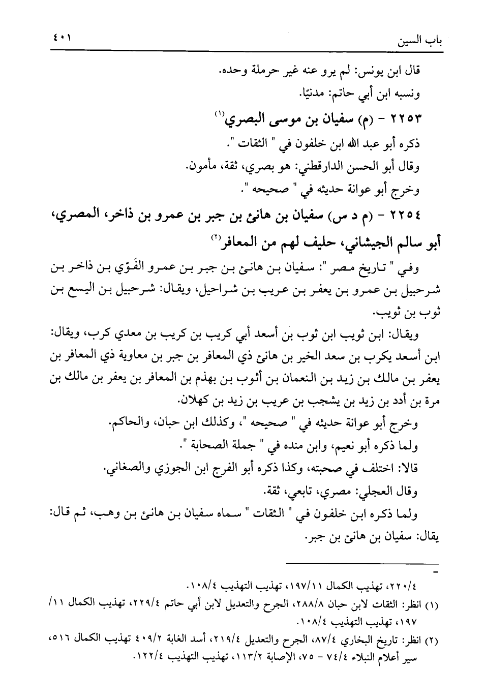 ٢٢٥٤ - (م د س) سفيان بن هانئ بن جبر بن عمرو بن ذاخر، المصري، أبو سالم الجيشاني، حليف لهم من المعافر (¬٢)
