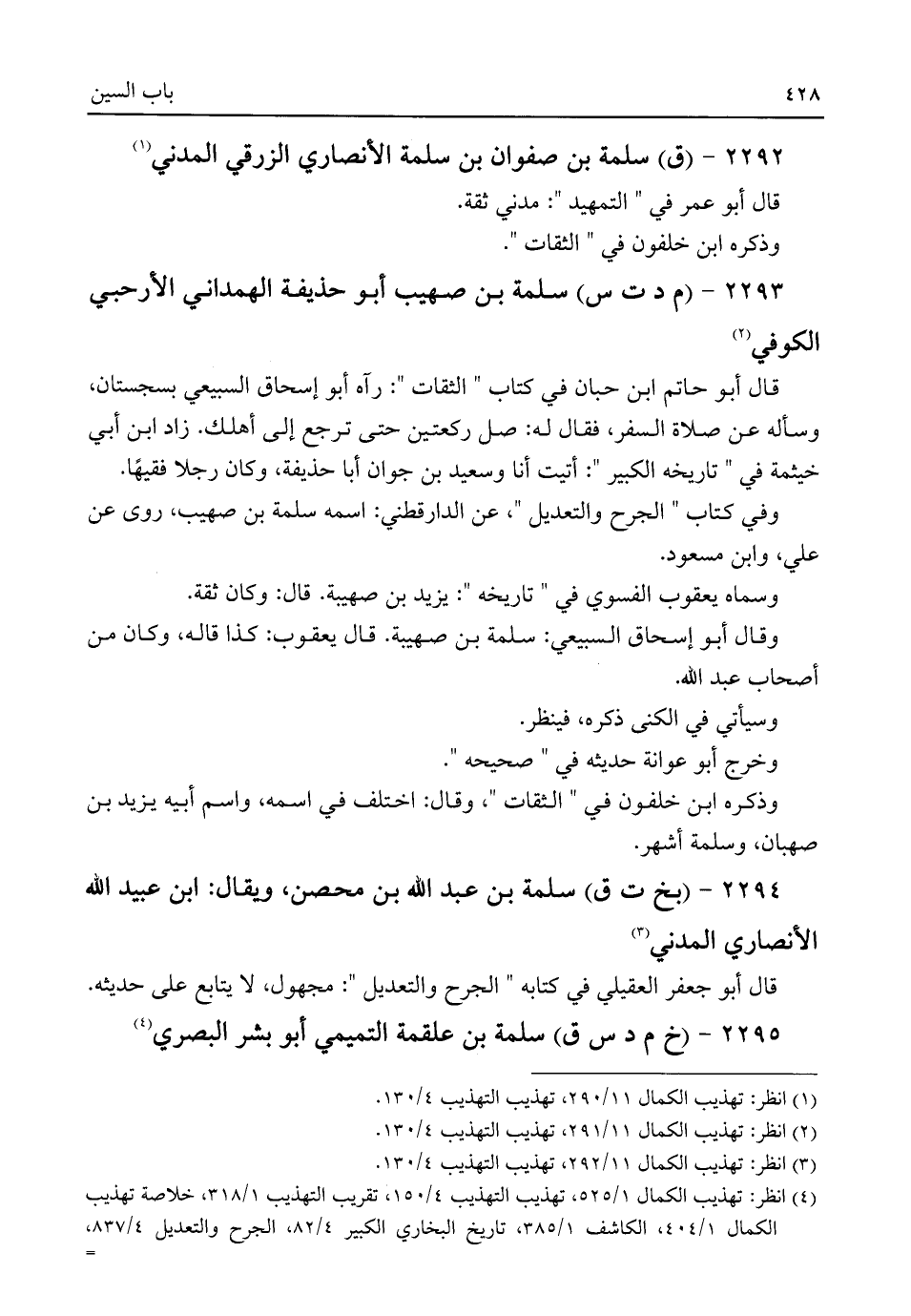 ٢٢٩٣ - (م د ت س) سلمة بن صهيب أبو حذيفة الهمداني الأرحبي الكوفي (¬٢)