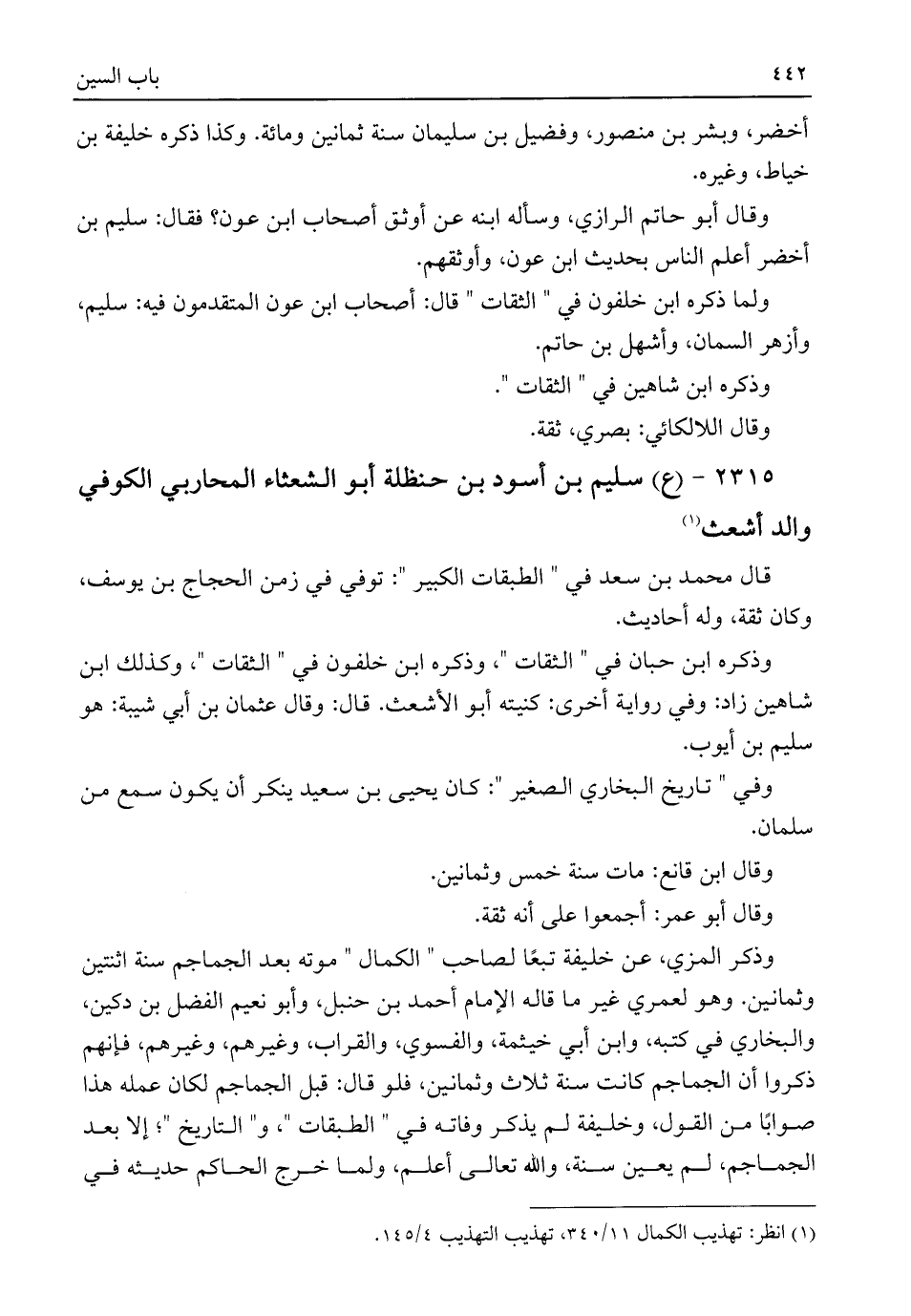(¬١) انظر: تهذيب الكمال ١١/ ٣٤٠، تهذيب التهذيب ٤/ ١٤٥.
