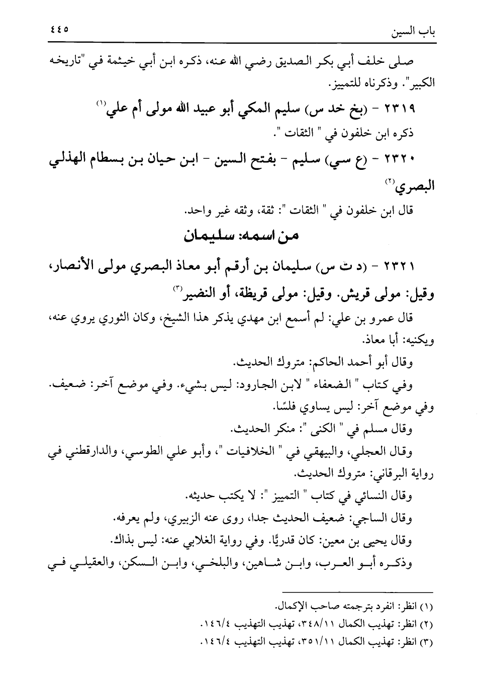 (¬٣) انظر: تهذيب الكمال ١١/ ٣٥١، تهذيب التهذيب ٤/ ١٤٦.
