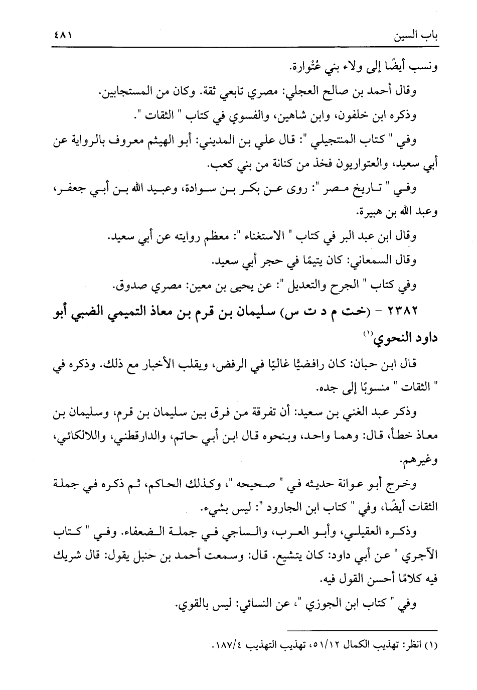 (¬١) انظر: تهذيب الكمال ١٢/ ٥١، تهذيب التهذيب ٤/ ١٨٧.
