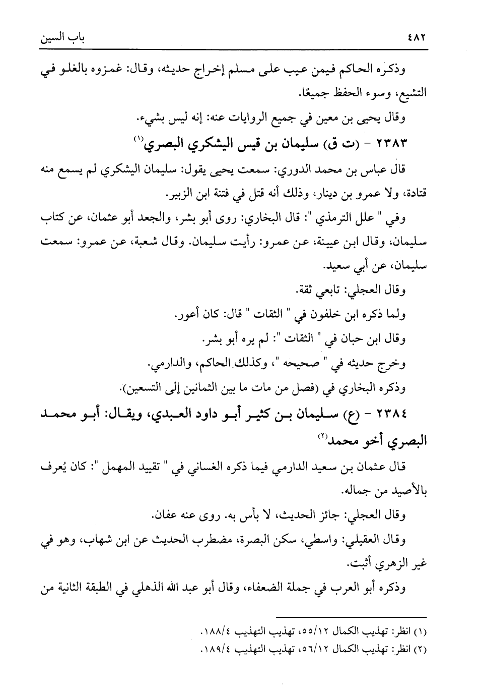 (¬٢) انظر: تهذيب الكمال ١٢/ ٥٦، تهذيب التهذيب ٤/ ١٨٩.