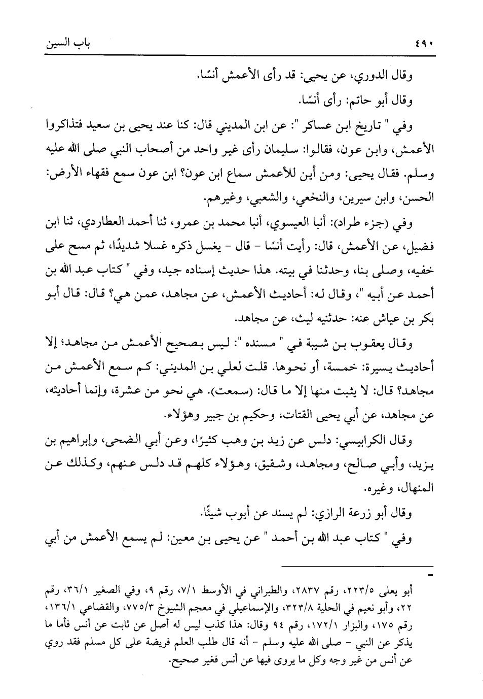 وقال الدوري، عن يحيى: قد رأى الأعمش أنسًا.