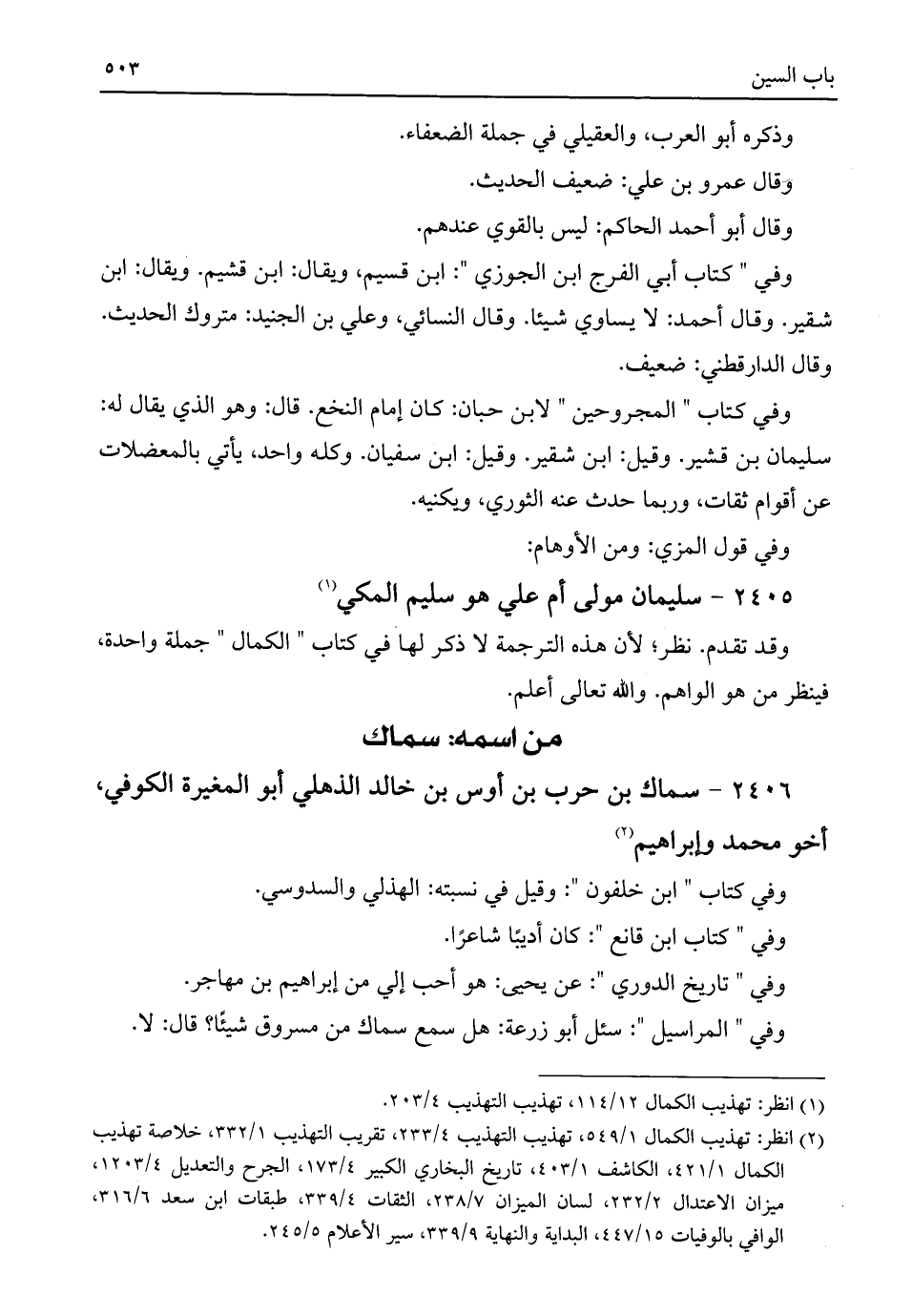 ٢٤٠٦ - سماك بن حرب بن أوس بن خالد الذهلي أبو المغيرة الكوفي، أخو محمد وإبراهيم (¬٢)