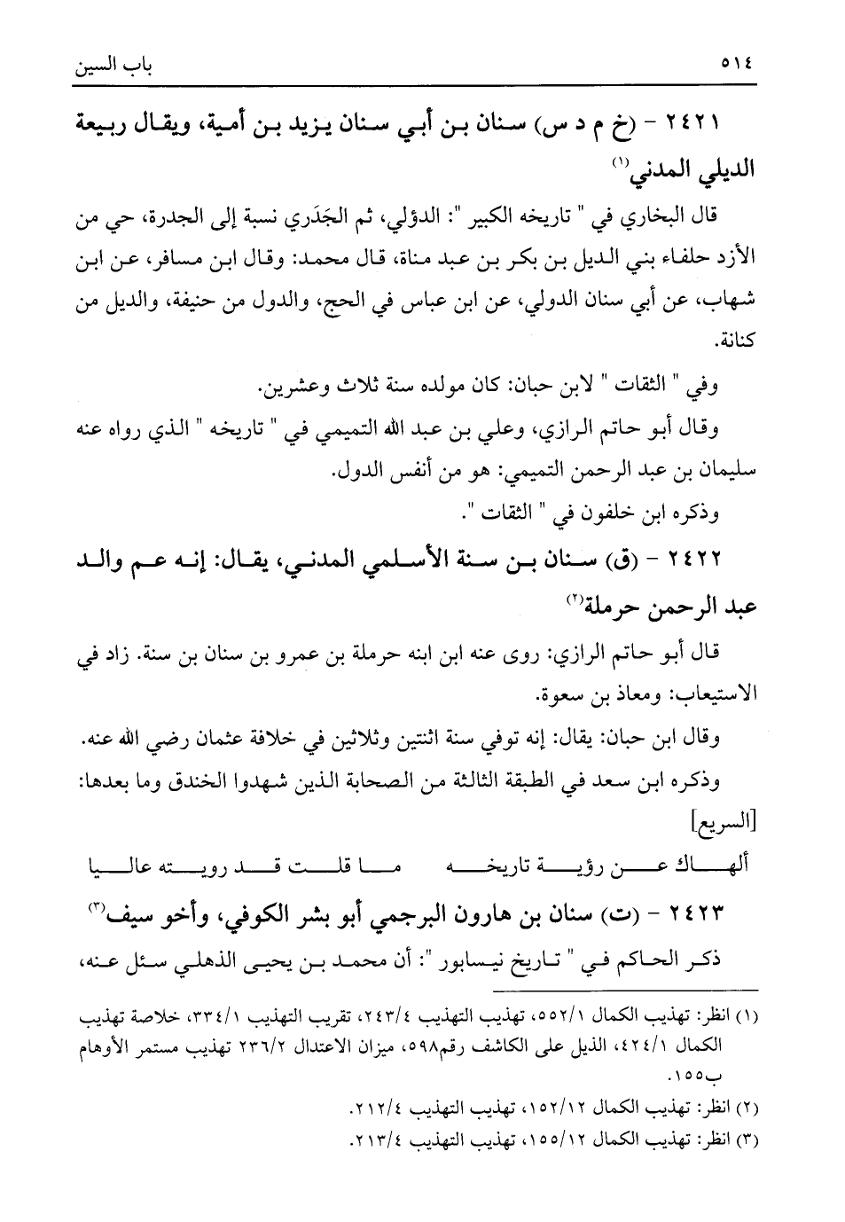 ٢٤٢٣ - (ت) سنان بن هارون البرجمي أبو بشر الكوفي، وأخو سيف (¬٣)