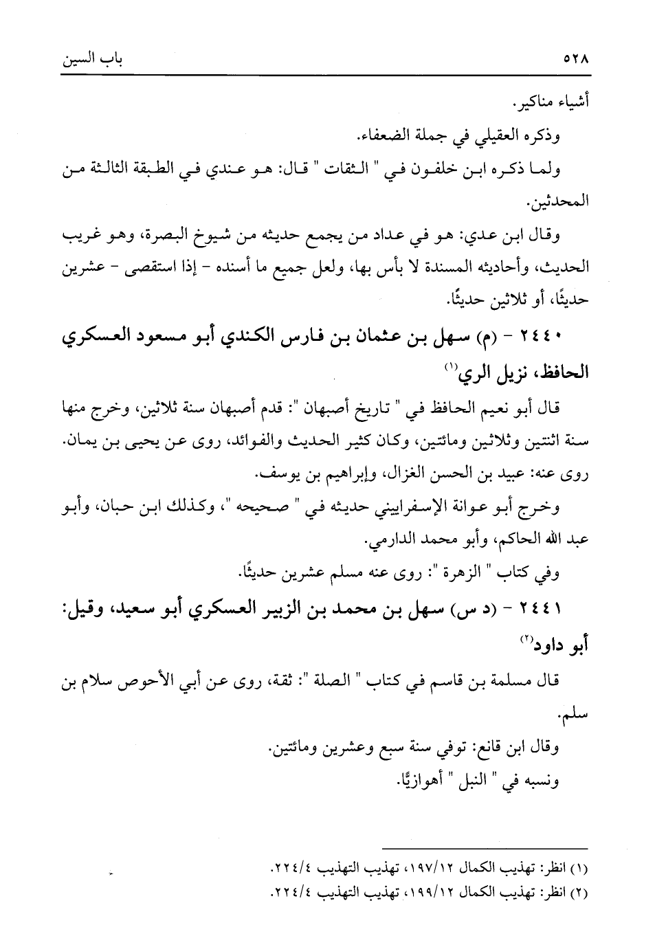 ٢٤٤٠ - (م) سهل بن عثمان بن فارس الكندي أبو مسعود العسكري الحافظ، نزيل الري (¬١)