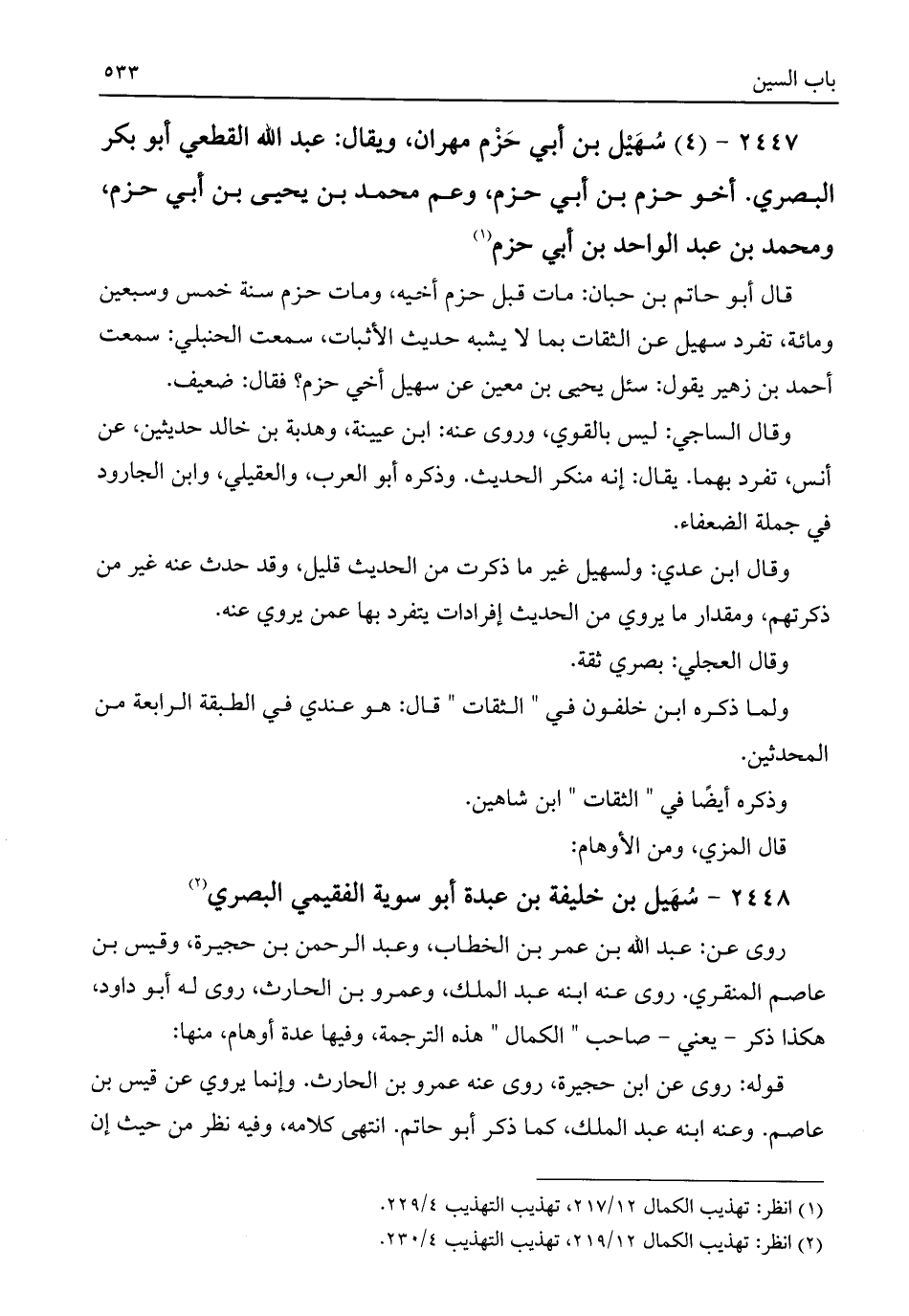 ٢٤٤٧ - (٤) سُهَيْل بن أبي حَزْم مهران، ويقال: عبد اللَّه القطعي أبو بكر البصري. أخو حزم بن أبي حزم، وعم محمد بن يحيى بن أبي حزم، ومحمد بن عبد الواحد بن أبي حزم (¬١)