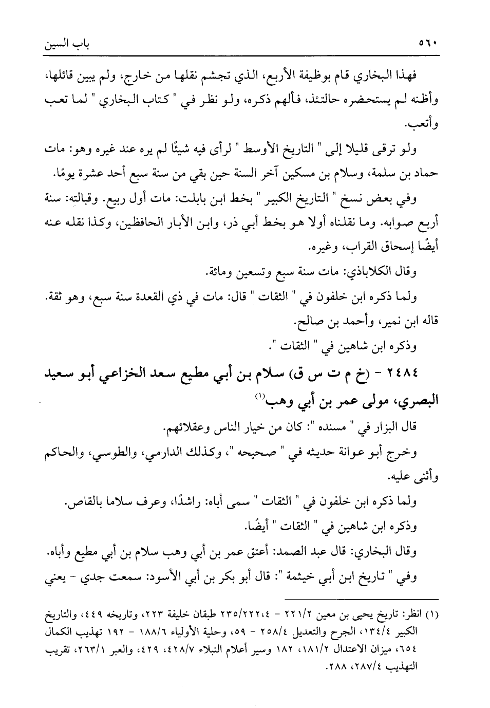 ٢٤٨٤ - (خ م ت س ق) سلام بن أبي مطيع سعد الخزاعي أبو سعيد البصري، مولى عمر بن أبي وهب (¬١)