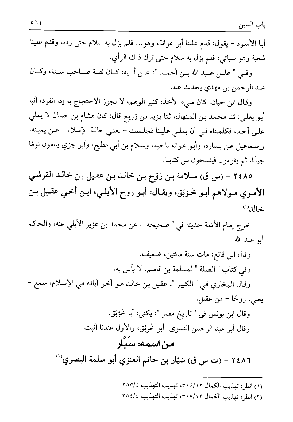 أبا الأسود- يقول: قدم علينا أبو عوانة، وهو .. . فلم يزل به سلام حتى رده، وقدم علينا شعبة وهو سبائي، فلم يزل به سلام حتى ترك ذلك الرأي.