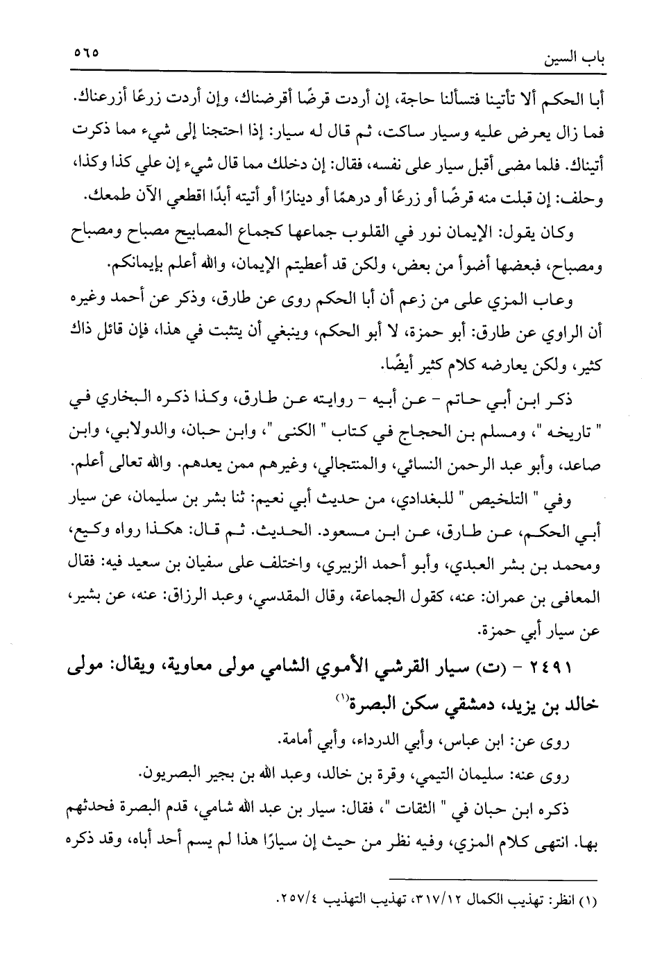 ٢٤٩١ - (ت) سيار القرشي الأموي الشامي مولى معاوية، ويقال: مولى خالد بن يزيد، دمشقي سكن البصرة (¬١)
