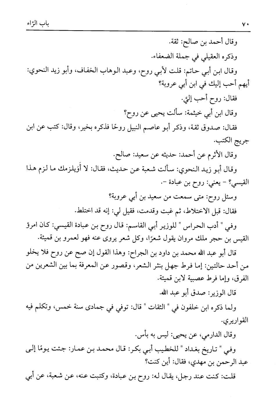فقال: صدوق ثقة، وذكر أبو عاصم النبيل روحًا فذكره بخير، وقال: كتب عن ابن جريج الكتب.