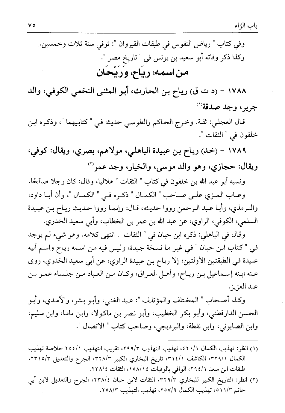 وقال في الباهلي: ذكره ابن حبان في "الثقات". انتهى كلامه. وهو شيء لم يوجد في "كتاب ابن حبان" في غير ما نسخة جيدة، وليس فيه من اسمه رياح واسم أبيه عبيدة في الطبقتين الأولتين، إلا رياح بن عبيدة الراوي، عن أبي سعيد الخدري، روى عنه ابنه إسماعيل بن رياح، وأهل العراق، وكان من العباد من جلساء عمر بن عبد العزيز.