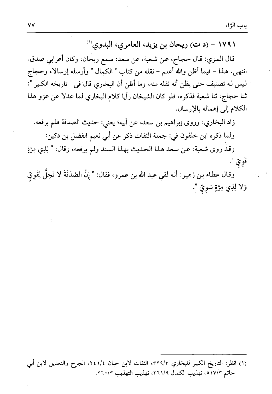 (¬١) انظر: التاريخ الكبير للبخاري ٣/ ٣٢٩، الثقات لابن حبان ٤/ ٢٤١، الجرح والتعديل لابن أبي حاتم ٣/ ٥١٧، تهذيب الكمال ٩/ ٢٦١، تهذيب التهذيب ٣/ ٢٦٠.