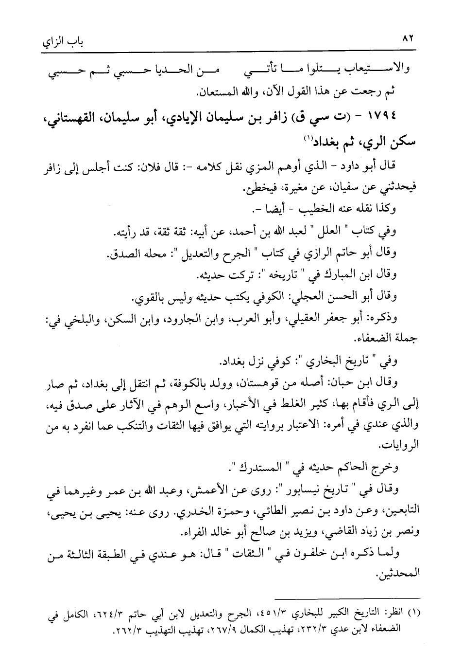 ١٧٩٤ - (ت سي ق) زافر بن سليمان الإيادي، أبو سليمان، القهستاني، سكن الري، ثم بغداد (¬١)