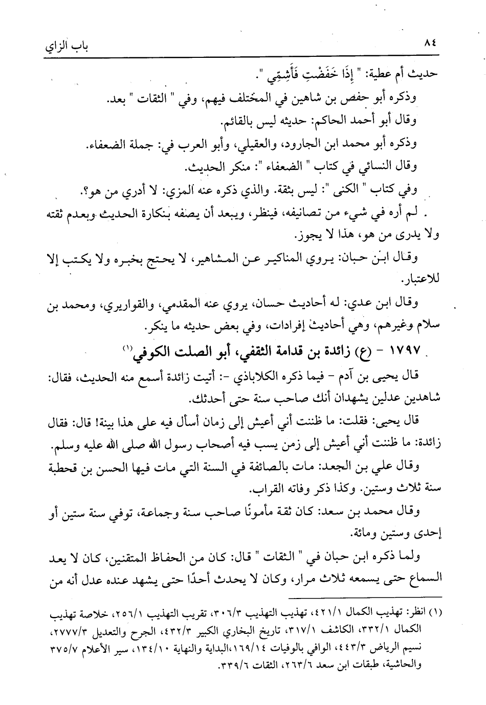 ١٧٩٧ - (ع) زائدة بن قدامة الثقفي، أبو الصلت الكوفي (¬١)