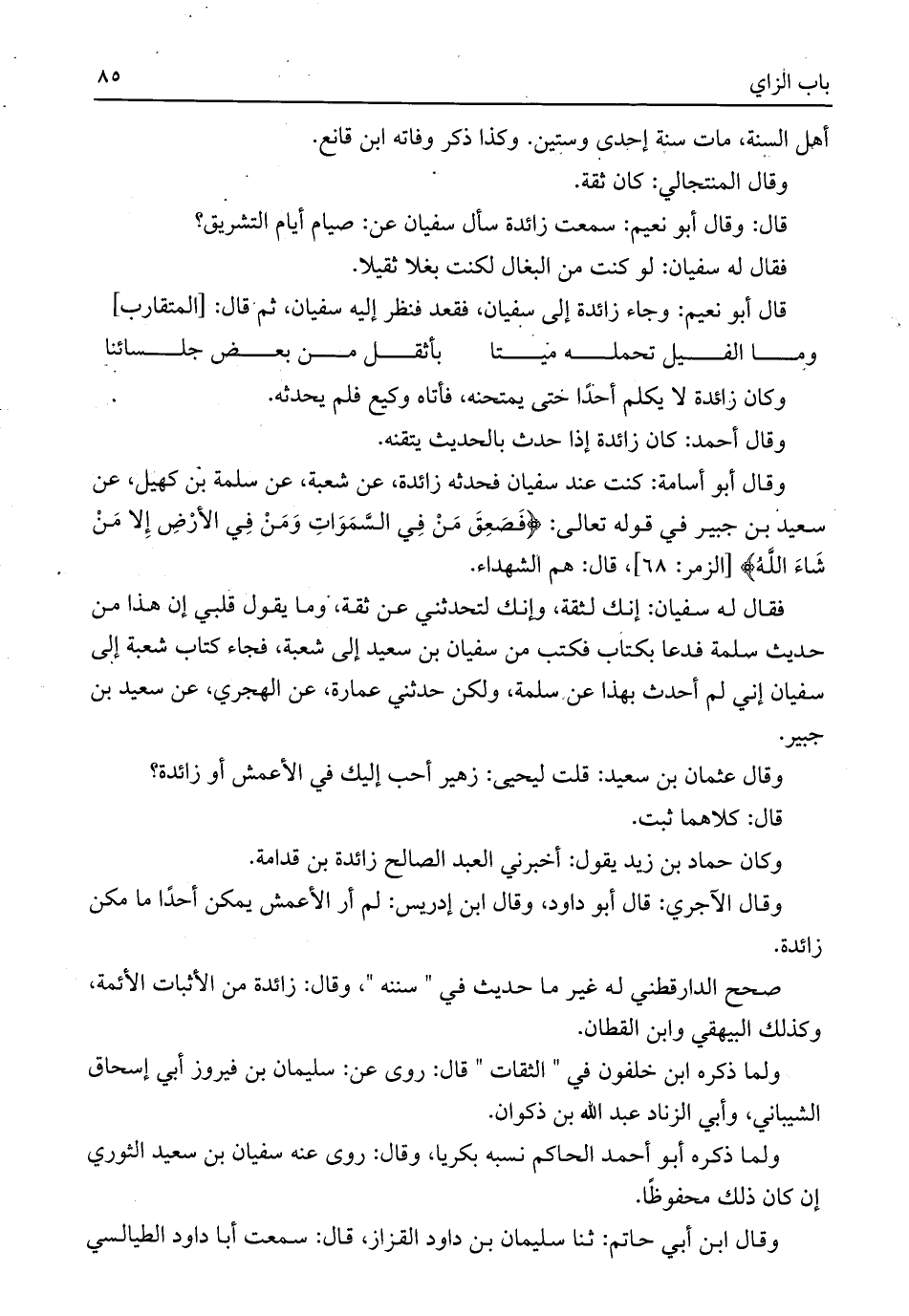 وكان حماد بن زيد يقول: أخبرني العبد الصالح زائدة بن قدامة.