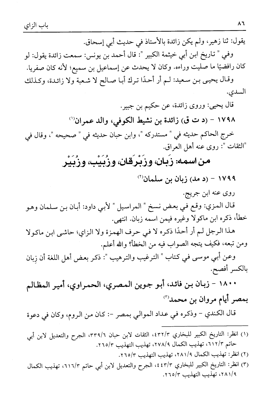 ١٨٠٠ - زبان بن فائد، أبو جوين المصري، الحمراوي، أمير المظالم بمصر أيام مروان بن محمد (¬٣)