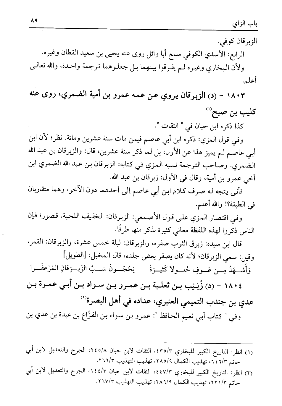 (¬٢) انظر: التاريخ الكبير للبخاري ٣/ ٤٤٧، الثقات لابن حبان ٣/ ١٤٤، الجرح والتعديل لابن أبي حاتم ٣/ ٦٢١، تهذيب الكمال ٩/ ٢٨٩، تهذيب التهذيب ٣/ ٢٦٧.