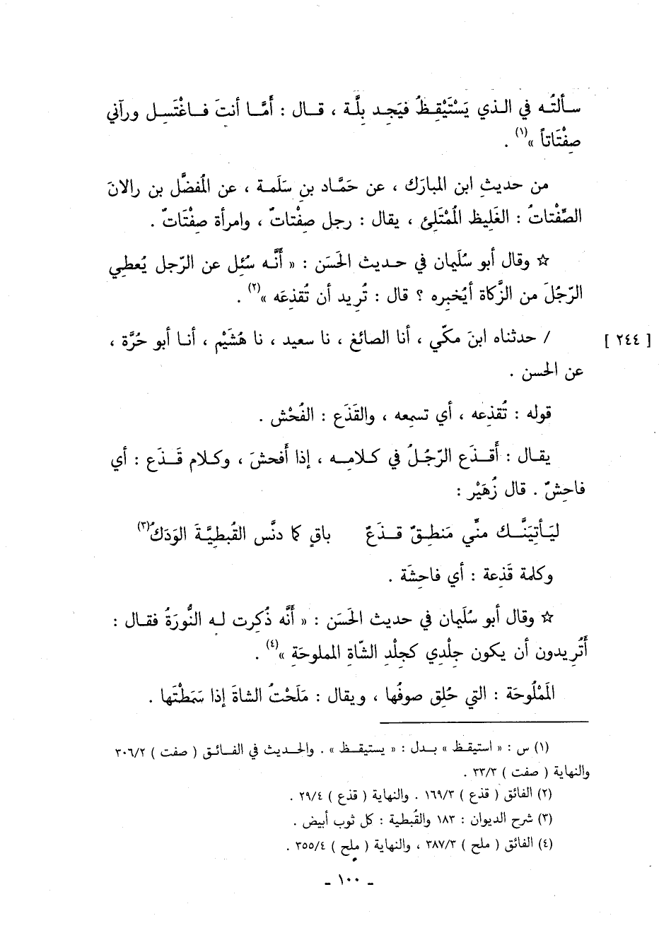 1 الفائق: "قذع": 169/ 3, والنهاية: "قذع": 29/ 4.