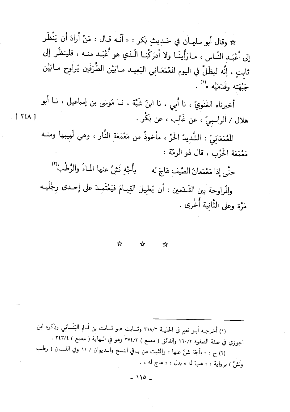 أخبرناه الغنوي، أخبرنا أبي، أخبرنا ابن شبة، أخبرنا موسى بن إسماعيل، أخبرنا أبو هلال "248" / الراسبي، عن غالب، عن بكر.