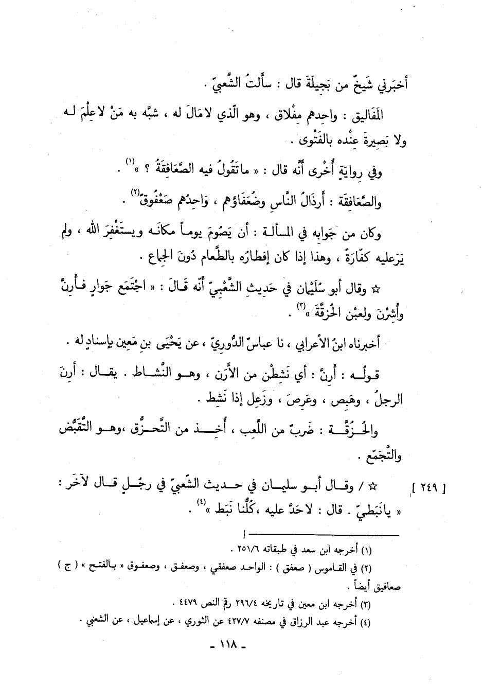 "249" /* وَقَالَ أَبُو سُلَيْمَانَ فِي حَدِيثِ الشعبي في رجل قال لآخر: "يا نَبَطِيّ, قال لا حد عليه؛ كُلُّنَا نَبَط"1.