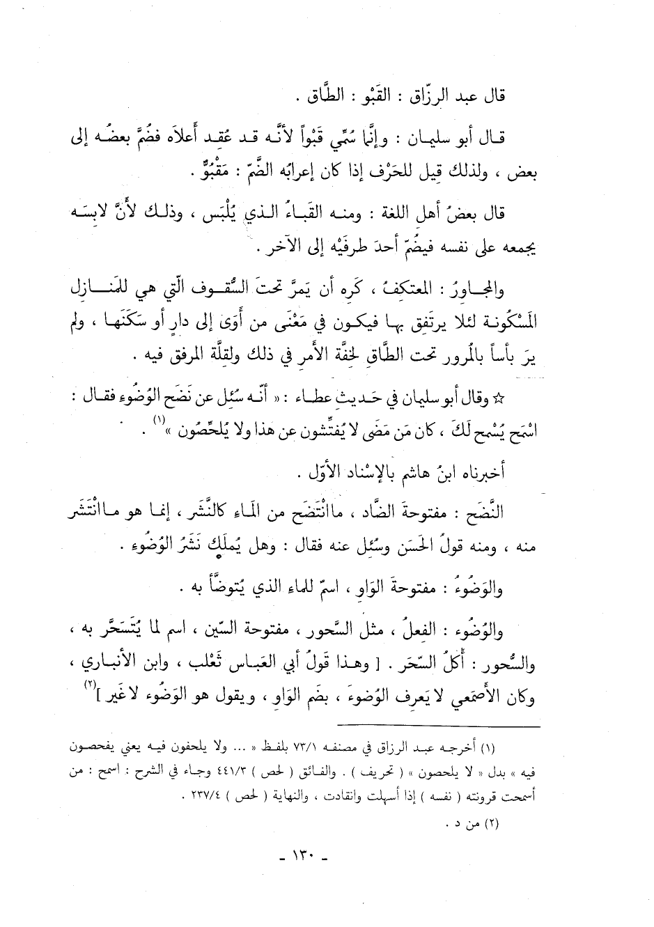 والوُضُوء: الفعل، مثل السَّحُور، مفتوحة السين، اسم لما يتسحر به، والسُّحُور: أكل السحر, [وهذا قول أبي العباس ثعلب، وابن الأنباري, وكان الأصمعي لا يعرف الوضوء بضم الواو، ويقول هو الوضوء لا غير] 2