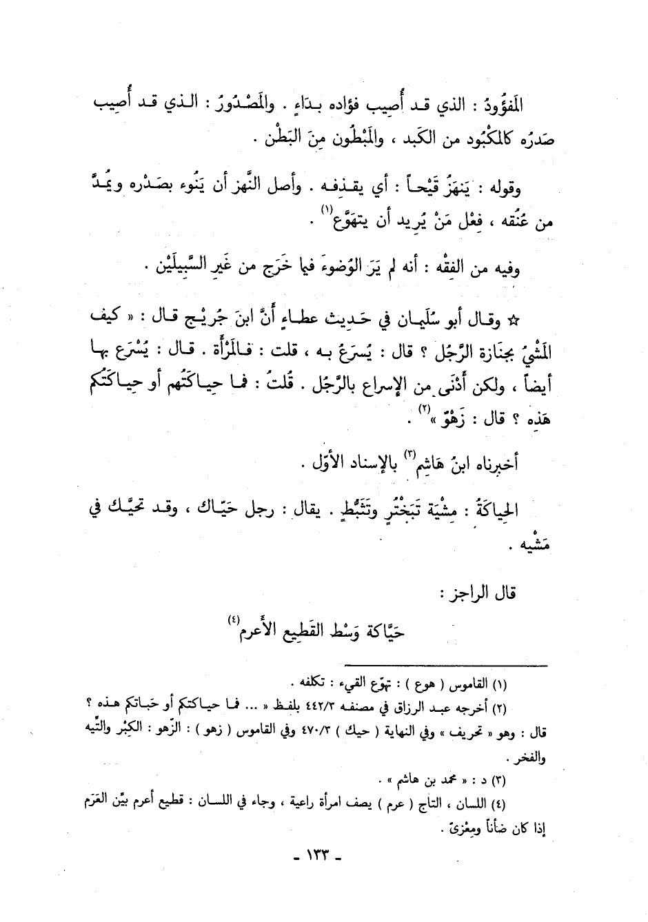 1 أخرجه عبد الرزاق في: مصنفه: 442/ 3 بلفظ " ... فما حياكتكم أو حباتكم هذه؟ " قال: وهو تحريف, وفي النهاية: "حيك": 470/ 3, وفي القاموس: "زهو": الزهو: الكبر والتيه والفخر.