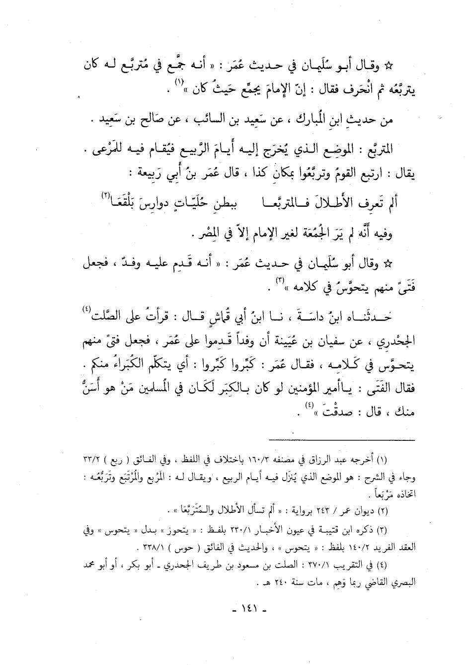 1 أخرجه عبد الرزاق في: مصنفه: 160/ 3 باختلاف في اللفظ، وفي الفائق: "ربع": 33/ 2, وجاء في الشرح: هو الموضع الذي ينزل فيه أيام الربيع، ويقال له: المربع والمرتبع وتَرَبُّعُهُ: اتخاذه مربعاً.