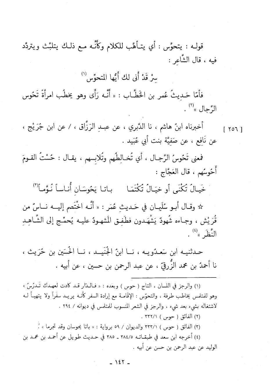 فَأَمَّا حَدِيثُ عُمَرَ بْنِ الْخَطَّابِ: "أنه رأى وهو يخطب امرأة تَحُوس الرجال"2.