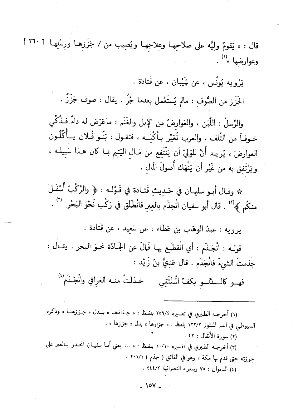 2 أخرجه الطبرى في: تفسيره: 10/ 10, بلفظ: " ... يعني أبا سفيان انحدر بالعير على حوزته حتى قدم بها مكة", وهو في الفائق: "جذم": 201/ 1.