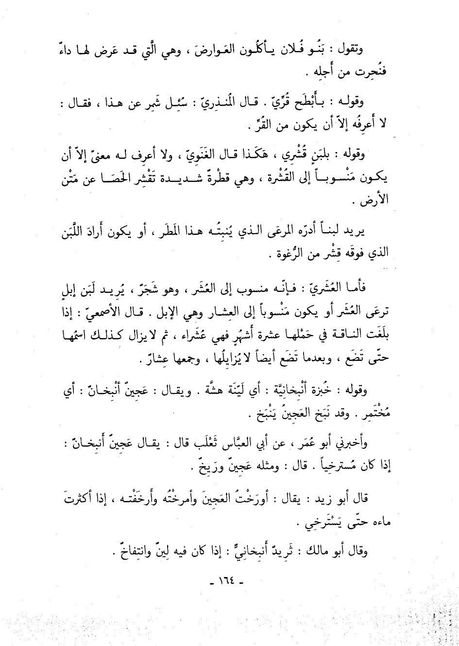 وقوله: بلبن قُشْرِيّ، هكذا قال الغنوي، ولا أعرف له معنى إلا أن يكون منسوبًا إلى القشرة، وهي قطرة شديدة تقشر الحصا عن متن الأرض.
