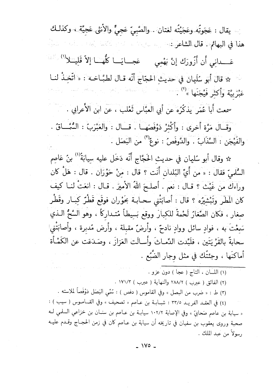 وقال مرة أخرى: وأكثر دَوْفَصَهَا, قال: والعَبْرَبُ: السُّمَّاق, والفَيْجَن: السَّذَاب, والدَّوْفَصُ: نوع 2 من البصل.