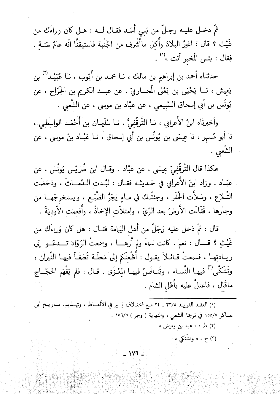 1 العقد الفريد: 33/ 5 - 34, مع اختلاف يسير في الألفاظ، وتهذيب تاريخ ابن عساكر: 155/ 7 في ترجمة الشعبي، والنهاية: "وجر": 156/ 5.