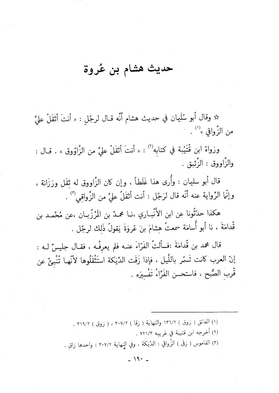 هكذا حدثونا عن ابن الأنباري، أخبرنا محمد بن المرزبان، عن محمد بن قدامة، أخبرنا أبو أسامة: سمعت هشام بن عروة يقول ذلك لرجل.